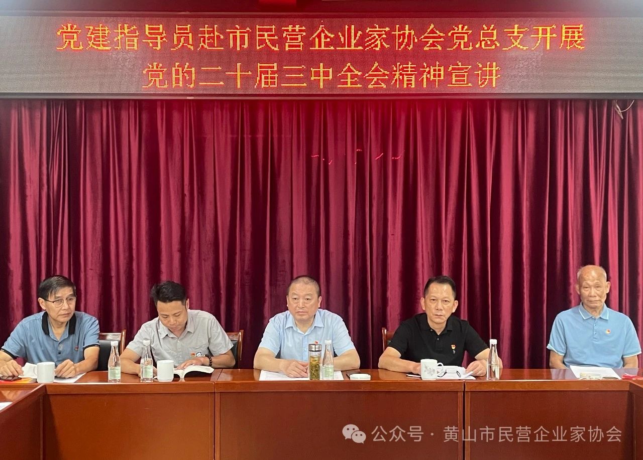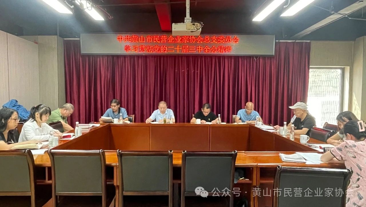 8月15日上午,黄山市民营企业家协会党总支组织党总支委员、各支部书记学习贯彻党的二十届三中全会精神,掀起学习的热潮。张为民书记主持会议。